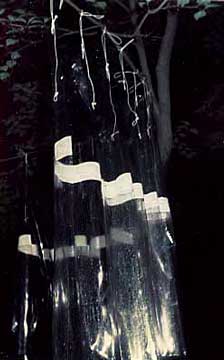 left and above: Tree Pieces were used to "Dress" the trees. Emphasis was placed on the knotting of ropes and looping (or gathering) of stripes, etc.