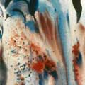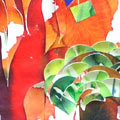 In the late 80's Sims started to compose paper collages from her watercolors. At that time she was rebelling against the high costs of watercolor paper, paints and framing, etc. while also rejecting the 'jury system' that catagorized work and charged entry fees for shows and exhibitions. She wanted to explore new directions so she began to combine materials and 3D effects. She found making collages to be a more contemplative way of working.